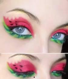 3. 派对妆容:用吃瓜金仔眼影在眼窝和眼尾处加重涂抹,再搭配一款亮片眼影,打造出闪耀的派对妆容。